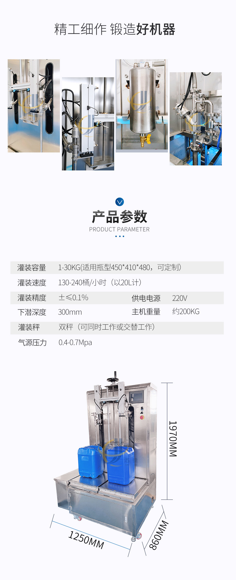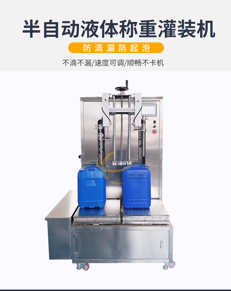 半自動(dòng)液體稱(chēng)重灌裝機適用于各種水劑以及高泡類(lèi)液體的灌裝。如:飲料、醋、醬油、液體化妝品、蛋白液、玻璃水等。