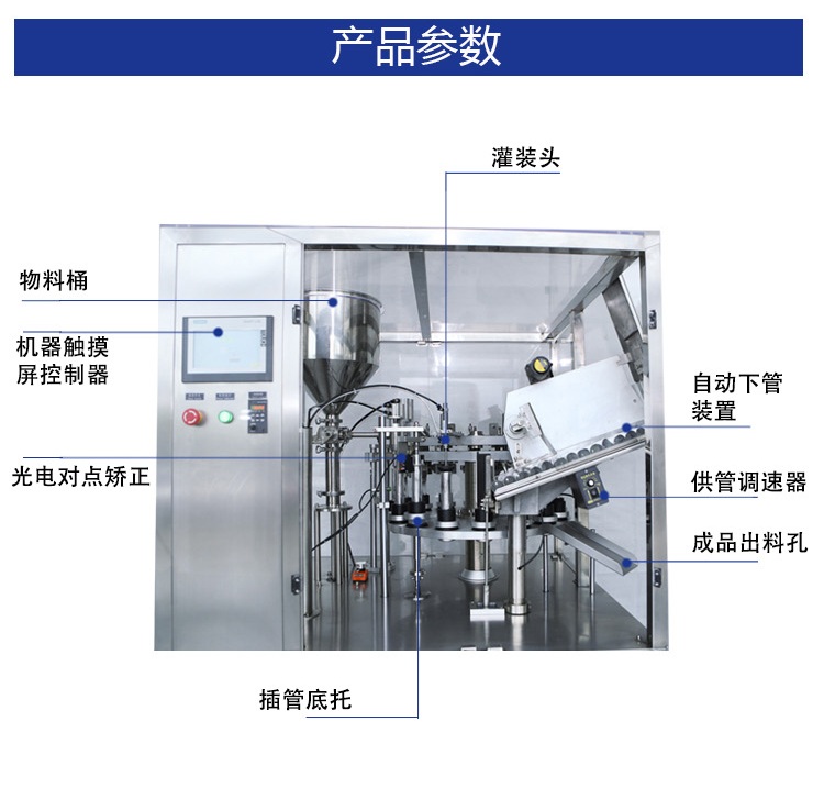 順利準確地注入軟管中,并完成管內熱風(fēng)加熱、封尾和打批號、生產(chǎn)日期等。
