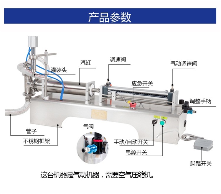 小型半自動(dòng)單頭液體灌裝機設備細節: